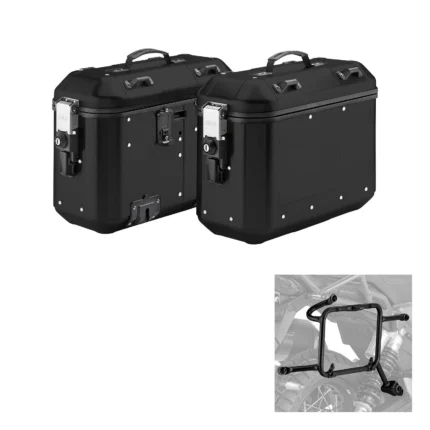 The lateral suitcases are provided with a specific frame, developed to be compatible with the for BMW R 1200 GS produced from 2017 to 2018. This solution allows a precise and integrated installation, ensuring that the suitcases adapt perfectly to the structure of the motorcycle. The use of a dedicated frame guarantees stability while traveling and minimizes any anomalous stresses on the main frame and on the fixing points.